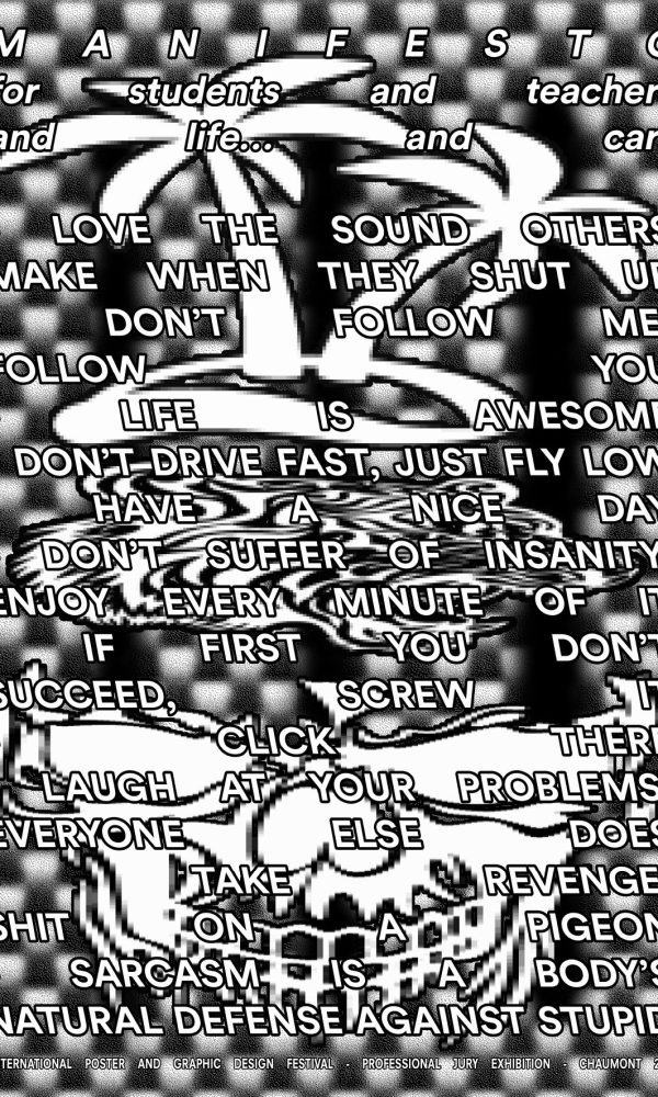S’il se tient à bonne distance de toute forme de respectabilité, Christophe Gaudard est fréquemment sélectionné et primé dans les biennales internationales d’affiche et de graphisme. L’école des beaux-arts de Besançon lui confie volontiers la promotion de ses journées portes ouvertes. Il répond par tout ce qui environne, contrarie et anime la pédagogie.